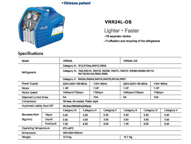 Thiết bị thu hồi gas lạnh VRR24L-OS / VRR24LOS-R32( (tách dầu)